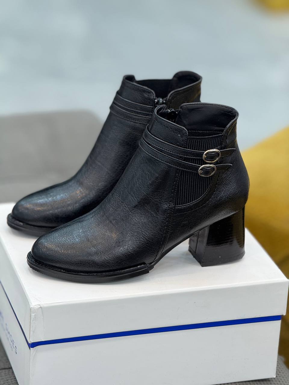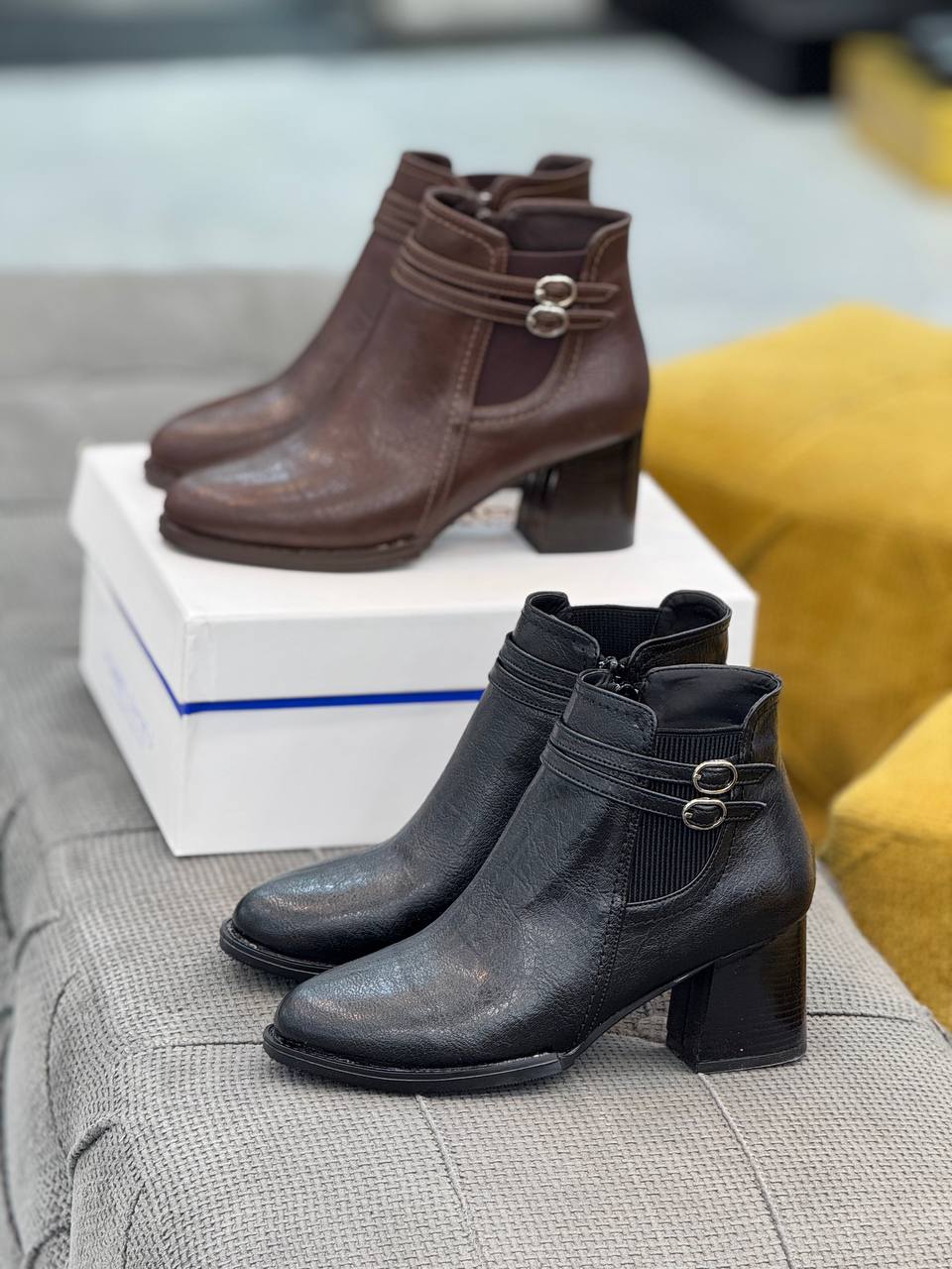 👢 بوت پاشنه ۲ سگک – طراحی کلاسیک با بند تزئینی، مناسب برای استایلهای روزمره و نیمهرسمی