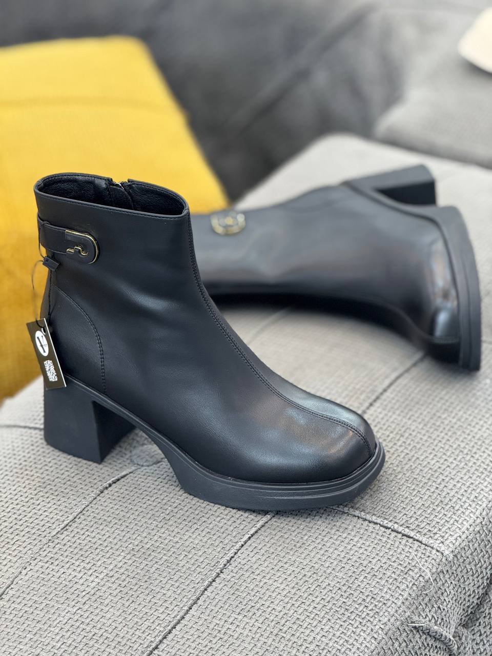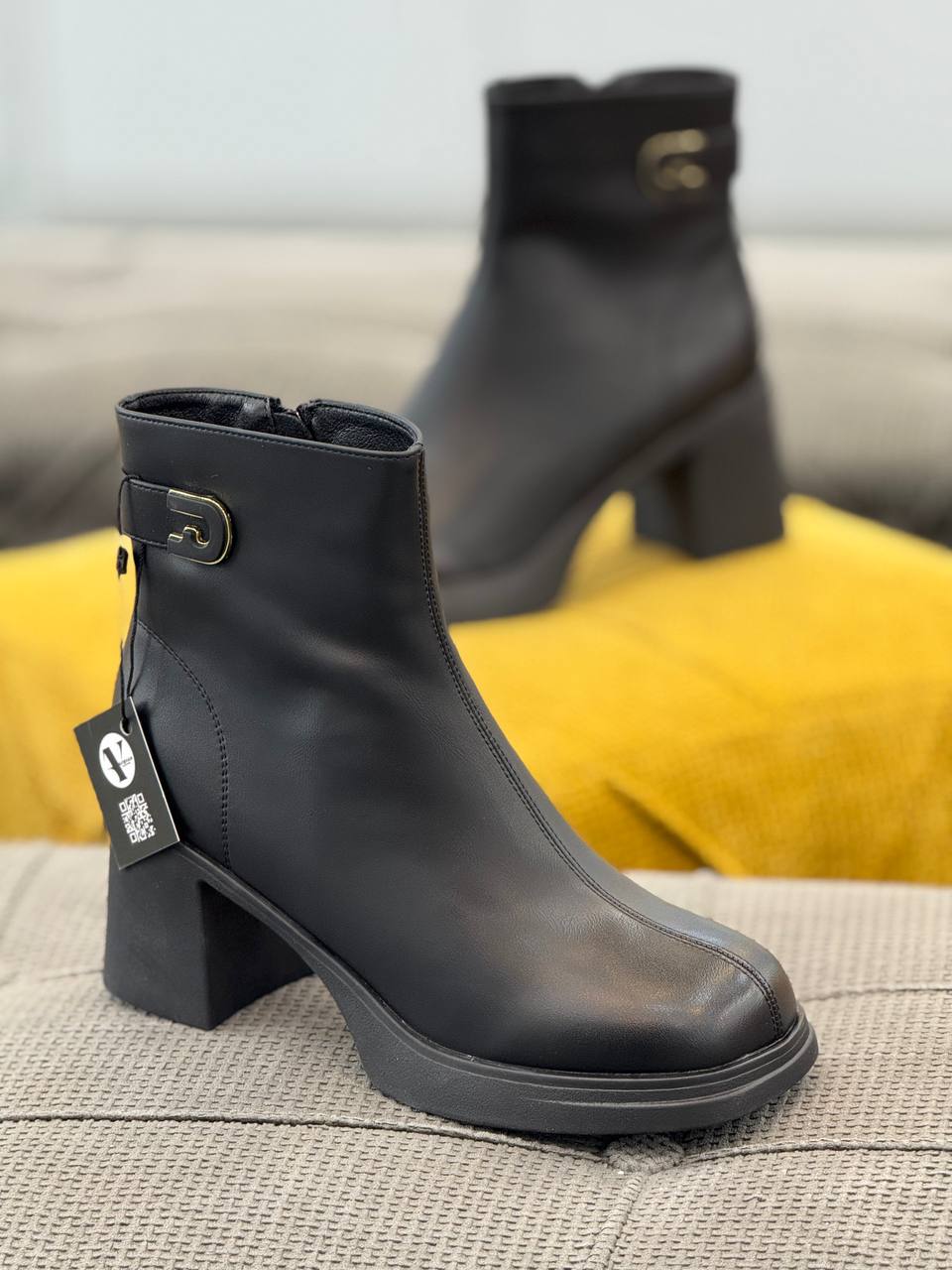 بوت «3296» با طراحی نیمساق، پاشنه پهن و فرم ایستاده، انتخابی خاص برای بانوانیست که دنبال استایل پاییزی/زمستانی، راحتی بالا و جلوه مدرن هستن. این مدل وارداتی با رویه چرم صنعتی مات، زیپ کناری و جزئیات فلزی ظریف، هم در ظاهر میدرخشه و هم در استفاده روزمره عملکرد عالی داره. طراحی پاشنه با ارتفاع استاندارد و زیره عاجدار باعث شده تا این بوت هم شیک باشه و هم کاربردی.