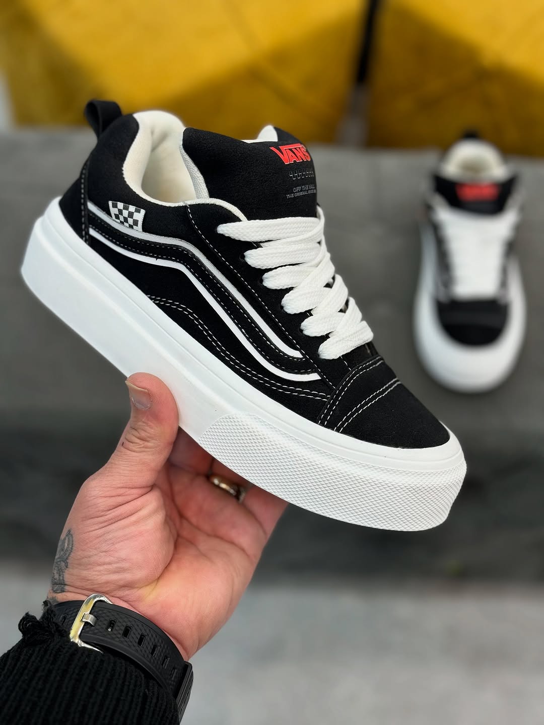 طرح شطرنجی کوچک کنار بندها، ادای احترام به ریشههای اسکیتبورد و فرهنگ خیابانی دهه ۹۰ است. این جزئیات ظریف باعث میشه مدل اولد P.A. نهتنها یک کفش باشه، بلکه حامل یک داستان باشه—برای کسانی که دنبال تیپهایی با هویت و اصالت هستند.