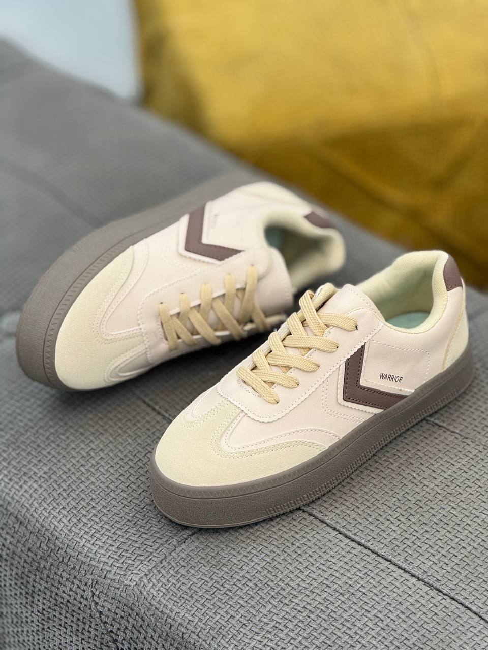 مدل «ونس واریور گروهبانی» با طراحی یونیسکس، فرم کلاسیک و جزئیات الهامگرفته از یونیفرمهای نظامی، انتخابی خاص برای کسانیست که دنبال راحتی، استایل خیابونی و جلوهای متفاوت در پوشش خودشون هستن. این مدل با لوگوی WARRIOR در کناره، زیرهی مقاوم و رویهی ترکیبی، هم از نظر بصری جذابه و هم از نظر عملکردی قابل اتکاست. طراحی ساده اما دقیق این مدل باعث شده تا در استایلهای روزمره، دانشگاهی یا عکاسی استایلی، بهخوبی بدرخشه.