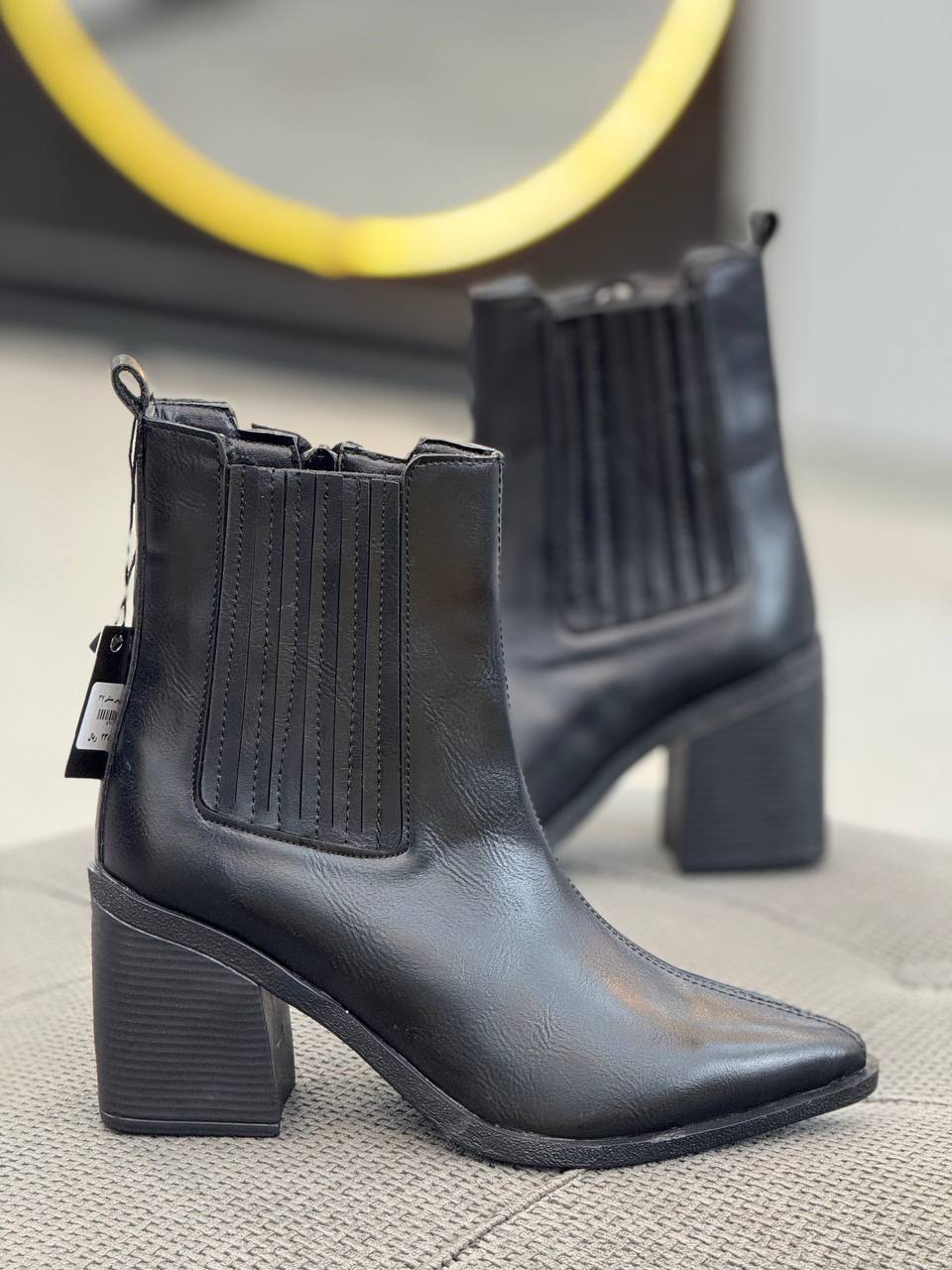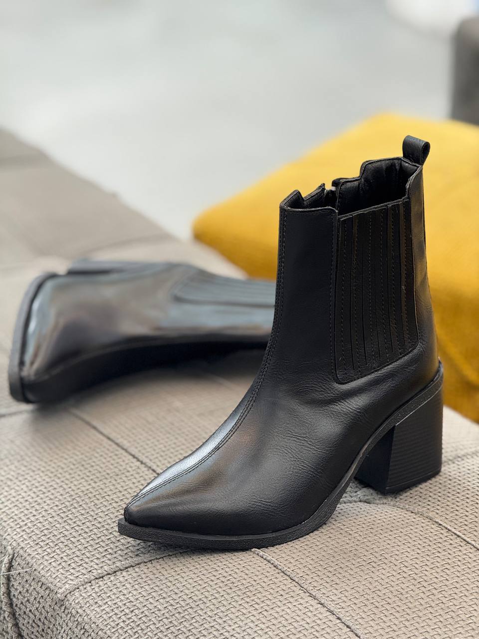 بوت «پاشنه نوک‌تیز بغل‌کِش» با طراحی کلاسیک، کش جانبی و فرم نوک‌دار، انتخابی خاص برای بانوانی‌ست که دنبال استایل مرتب، افزایش قد و جلوه‌ای رسمی و شیک هستن. این مدل با رویه چرم صنعتی براق، دوخت تمیز و پاشنه پهن، هم ظاهر لوکس داره و هم راحتی نسبی برای استفاده روزمره یا جلسات کاری. فرم کشیده نوک کفش باعث می‌شه پاها باریک‌تر و بلندتر دیده بشن، و کش جانبی پوشیدن رو سریع و بی‌دردسر کرده.