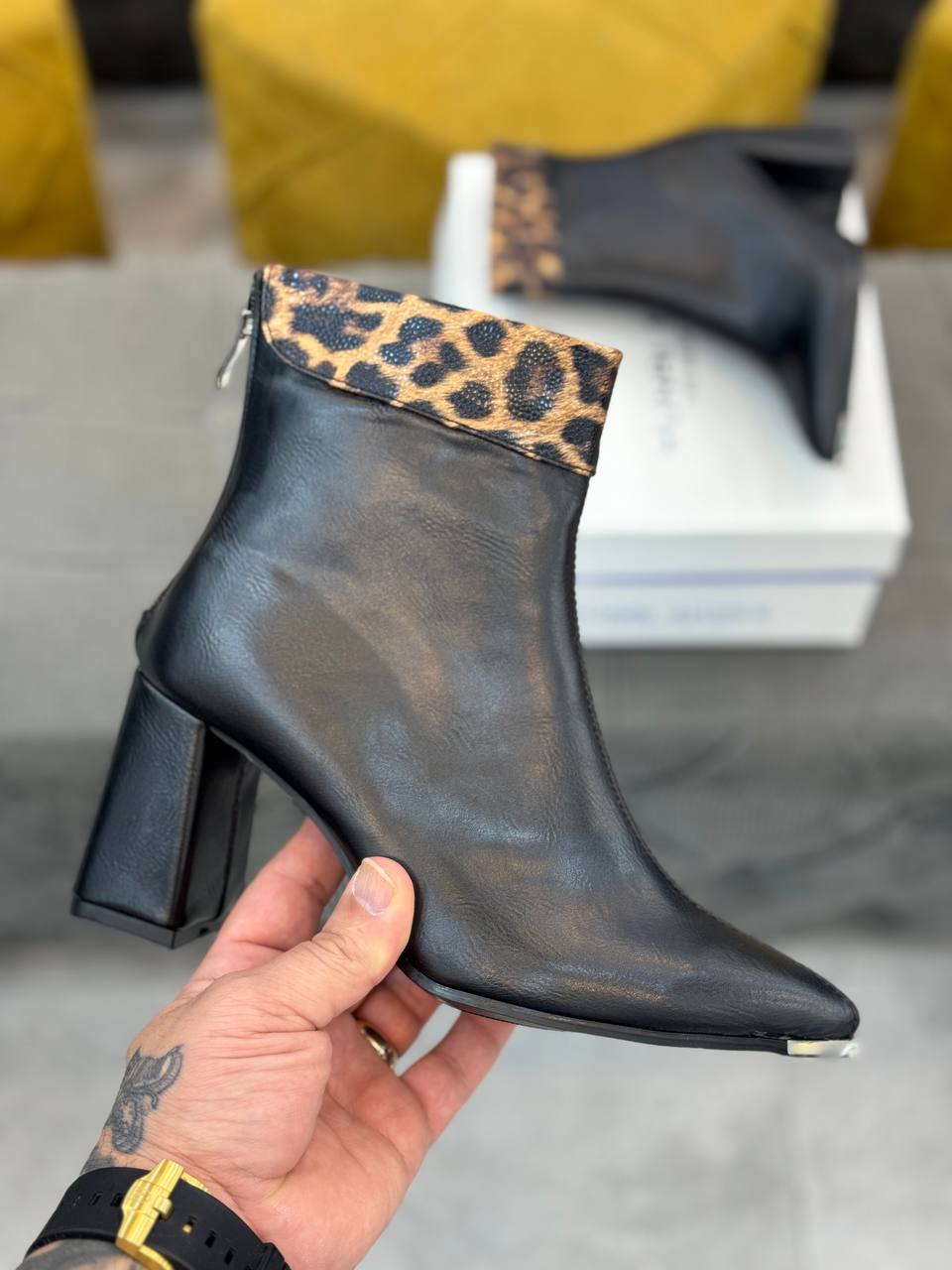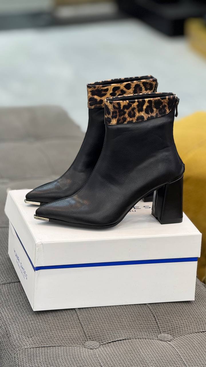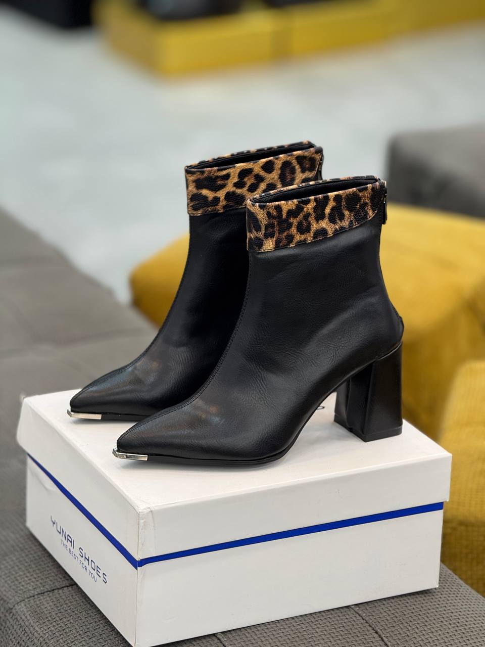 یقه پلنگی این بوت، امضای جسورانهایه که ظاهر کلاسیک مشکی رو به سطحی خاصتر و ترندتر ارتقا میده. ترکیب با نوک تیز و پاشنه مربعی، این مدل رو به انتخابی بیرقیب برای استایلهای شبانه تبدیل کرده.