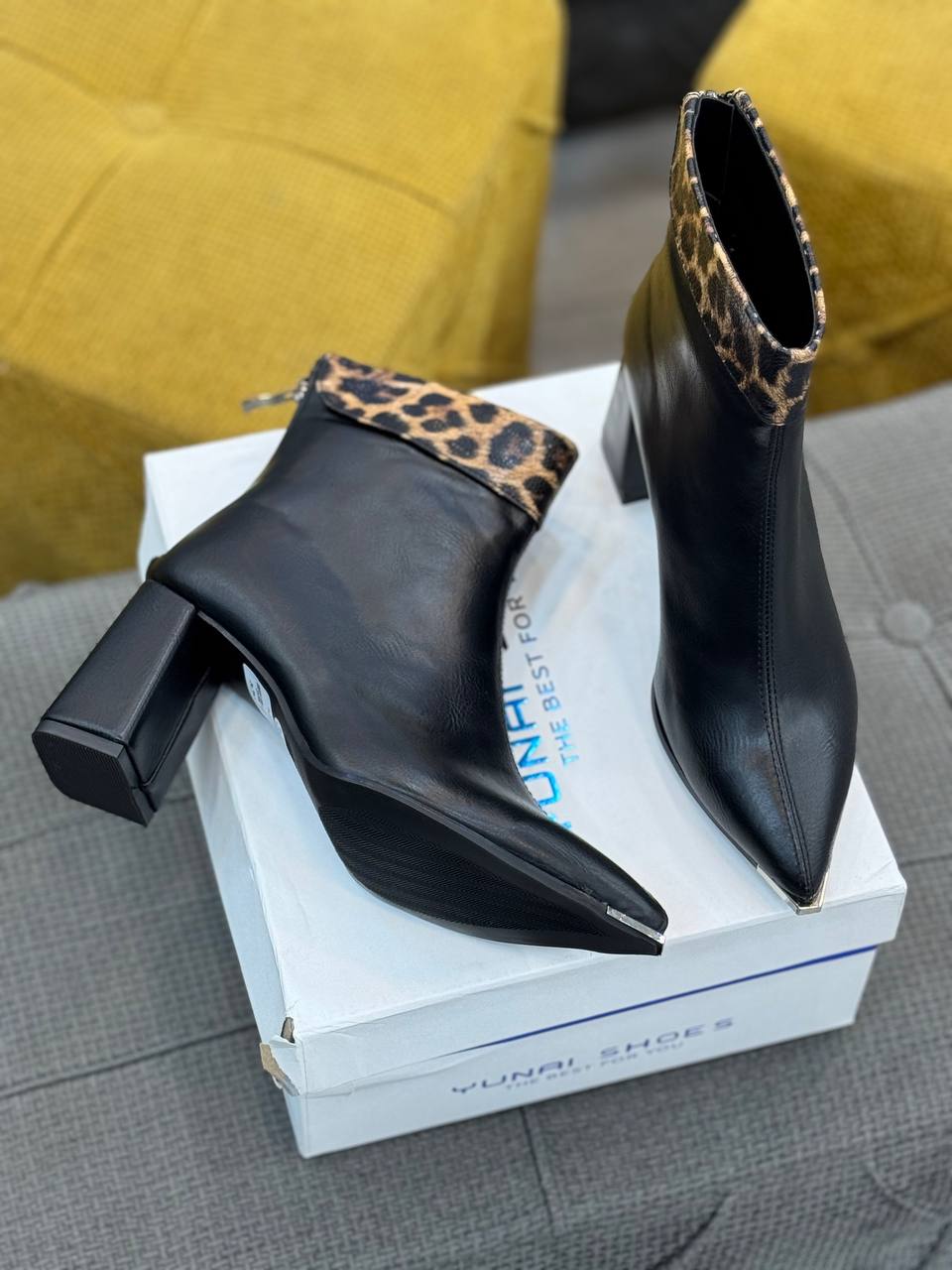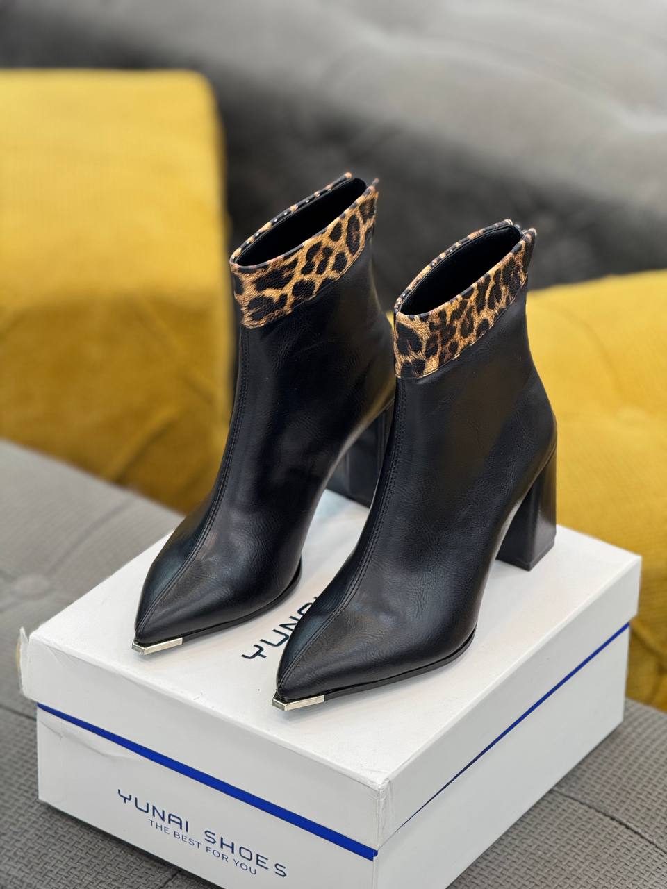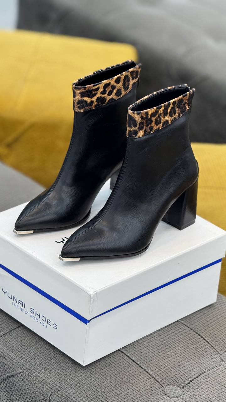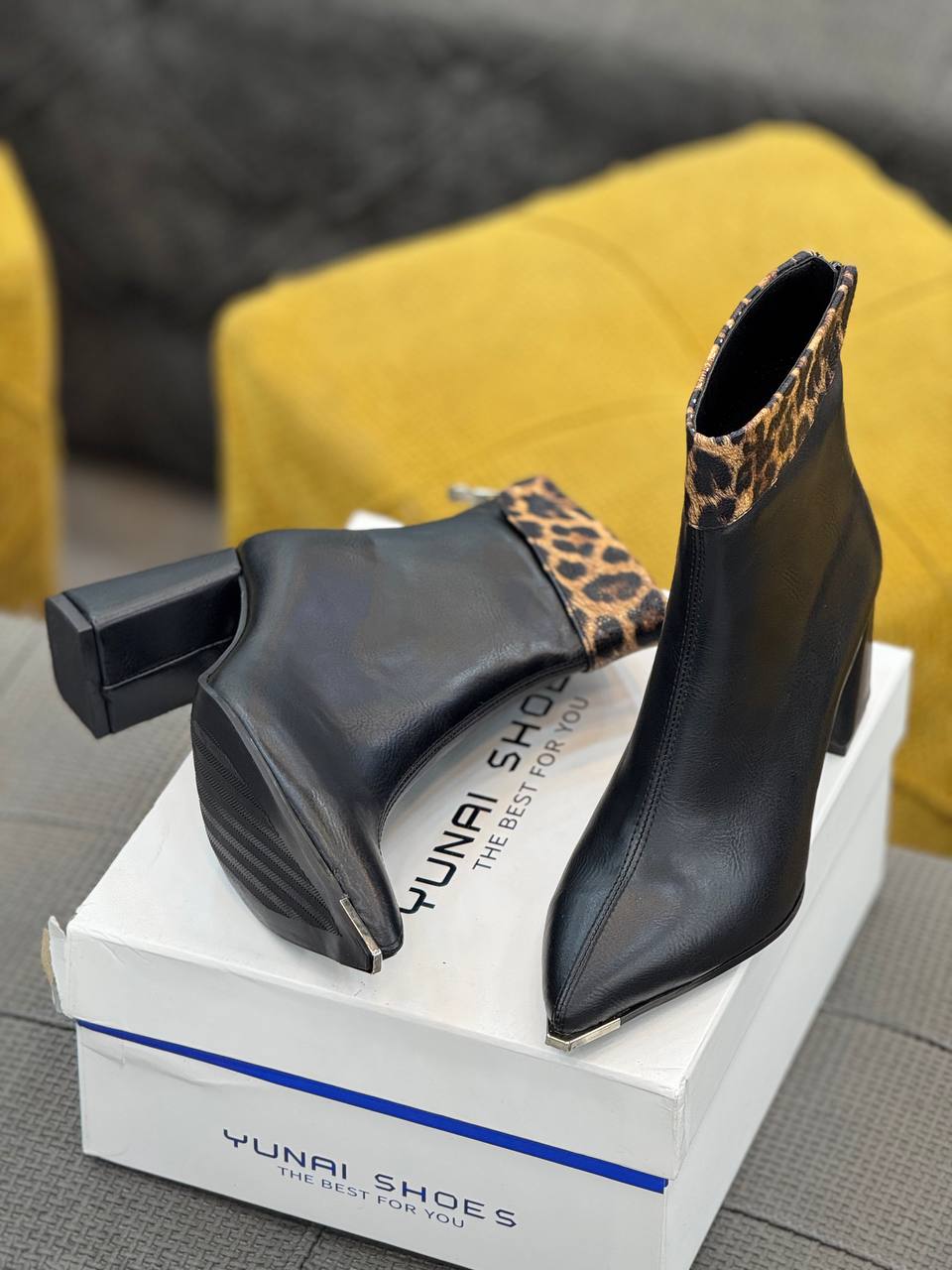 یقه پلنگی این بوت، امضای جسورانهایه که ظاهر کلاسیک مشکی رو به سطحی خاصتر و ترندتر ارتقا میده. ترکیب با نوک تیز و پاشنه مربعی، این مدل رو به انتخابی بیرقیب برای استایلهای شبانه تبدیل کرده.