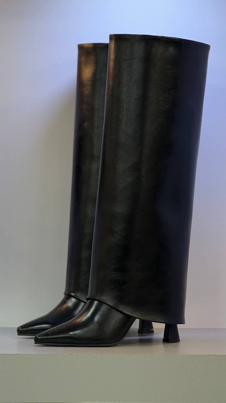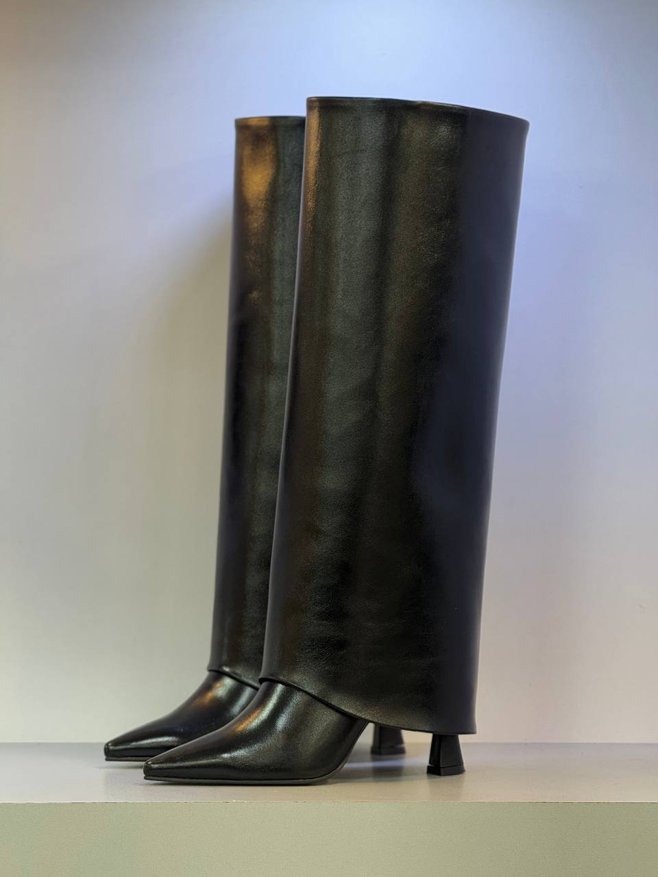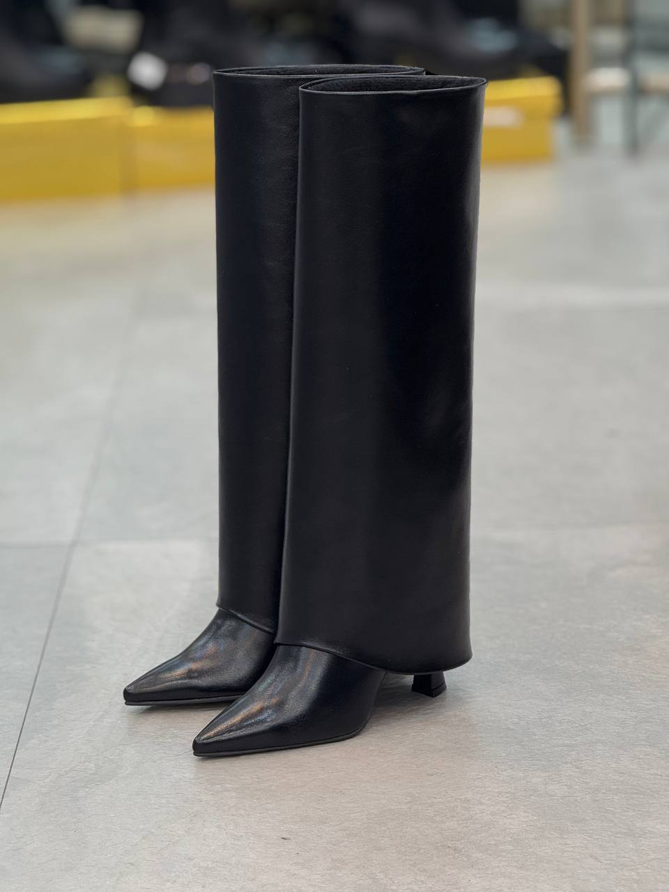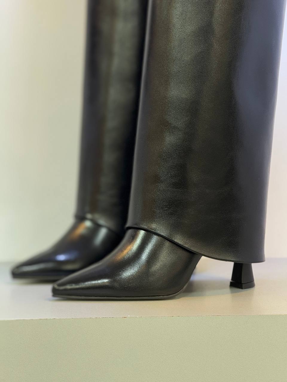 مدل «چکمه شلواری ۱۱۸۵» با طراحی یکتکه و فرم استوانهای، یکی از مدلهای خاص و آوانگارد برای استایلهای هنری، فشنشو یا مهمانیهای خاص محسوب میشه. این چکمه با ساق بلند، پنجه نوکتیز و پاشنه باریک، انتخابیه برای کسانی که دنبال استایل متفاوت، جسور و چشمگیر هستن.