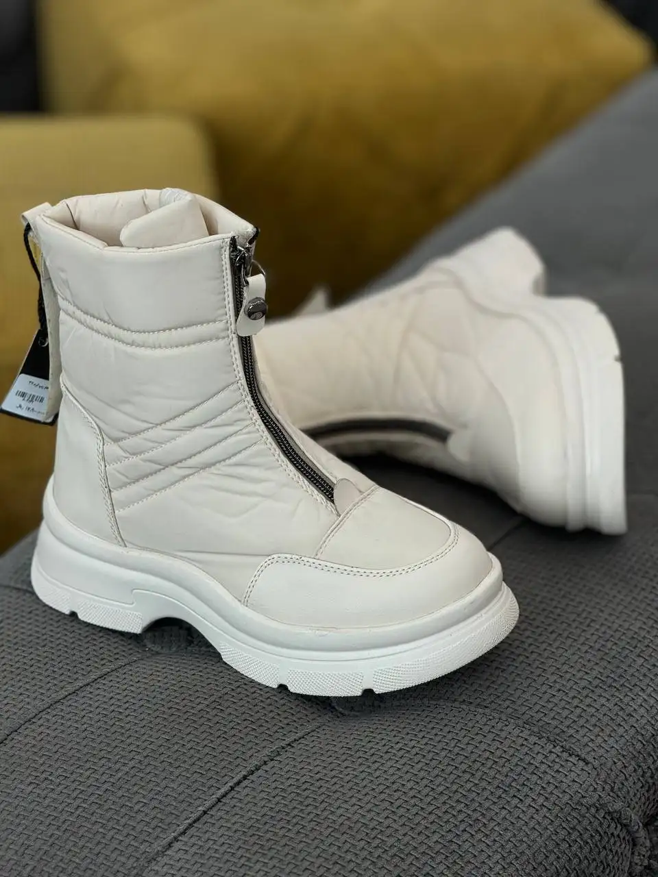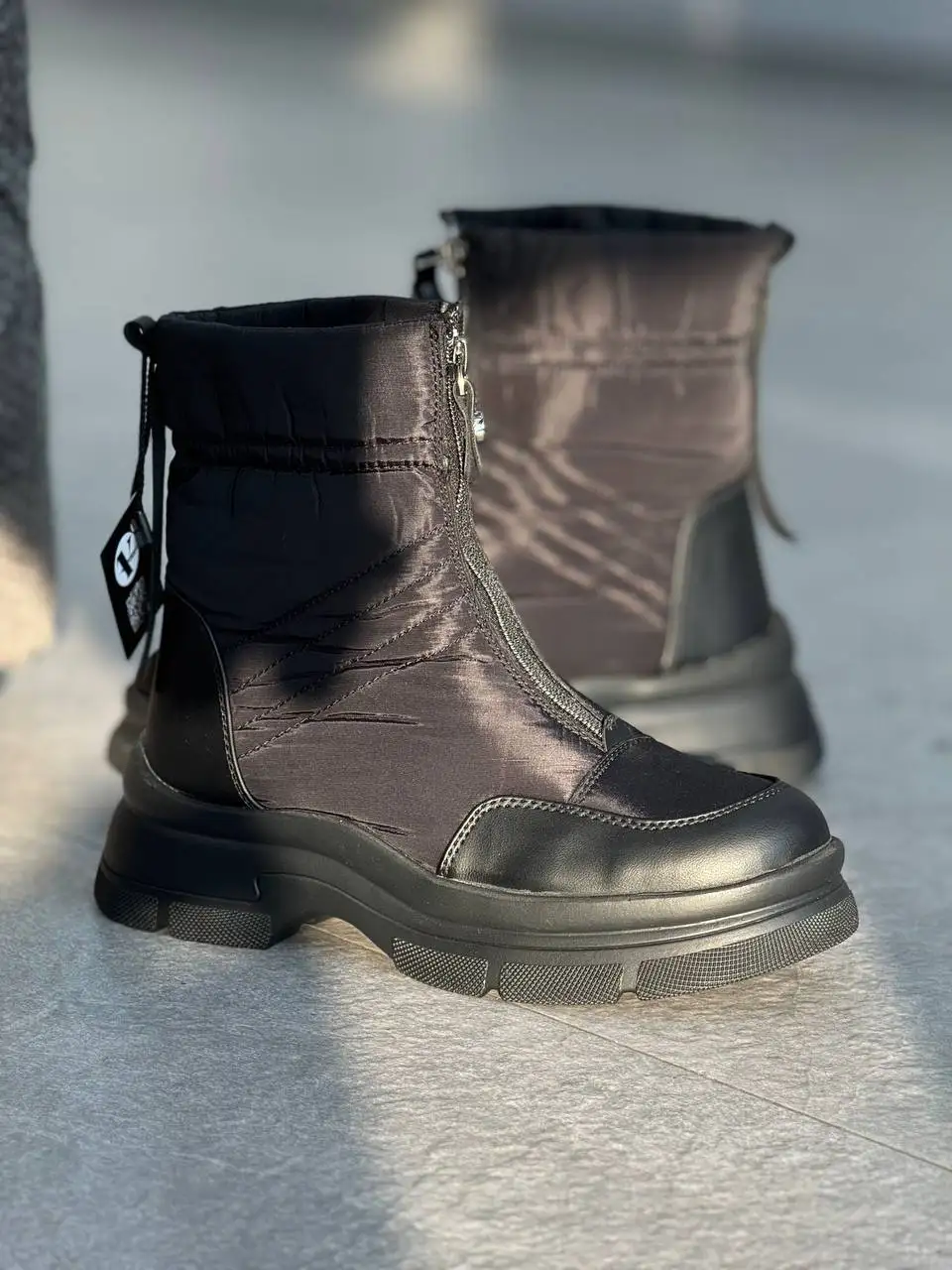 بوت کاپشنی جلو زیپ با طراحی زمستانی و ساختار عایقدار برای محافظت کامل از پا در برابر سرما و رطوبته. رویه این مدل از پارچه کاپشنی ضخیم و ضدآب ساخته شده و با زیپ مرکزی، پوشیدن و درآوردن اون بسیار راحت شده. زیره عاجدار و ضخیم، ثبات و ایمنی رو در مسیرهای لغزنده تضمین میکنه. ظاهر مدرن، دوخت تمیز و رنگبندی کاربردی باعث شده این مدل هم برای استفاده روزمره مناسب باشه، هم برای سفر یا محیطهای سرد.