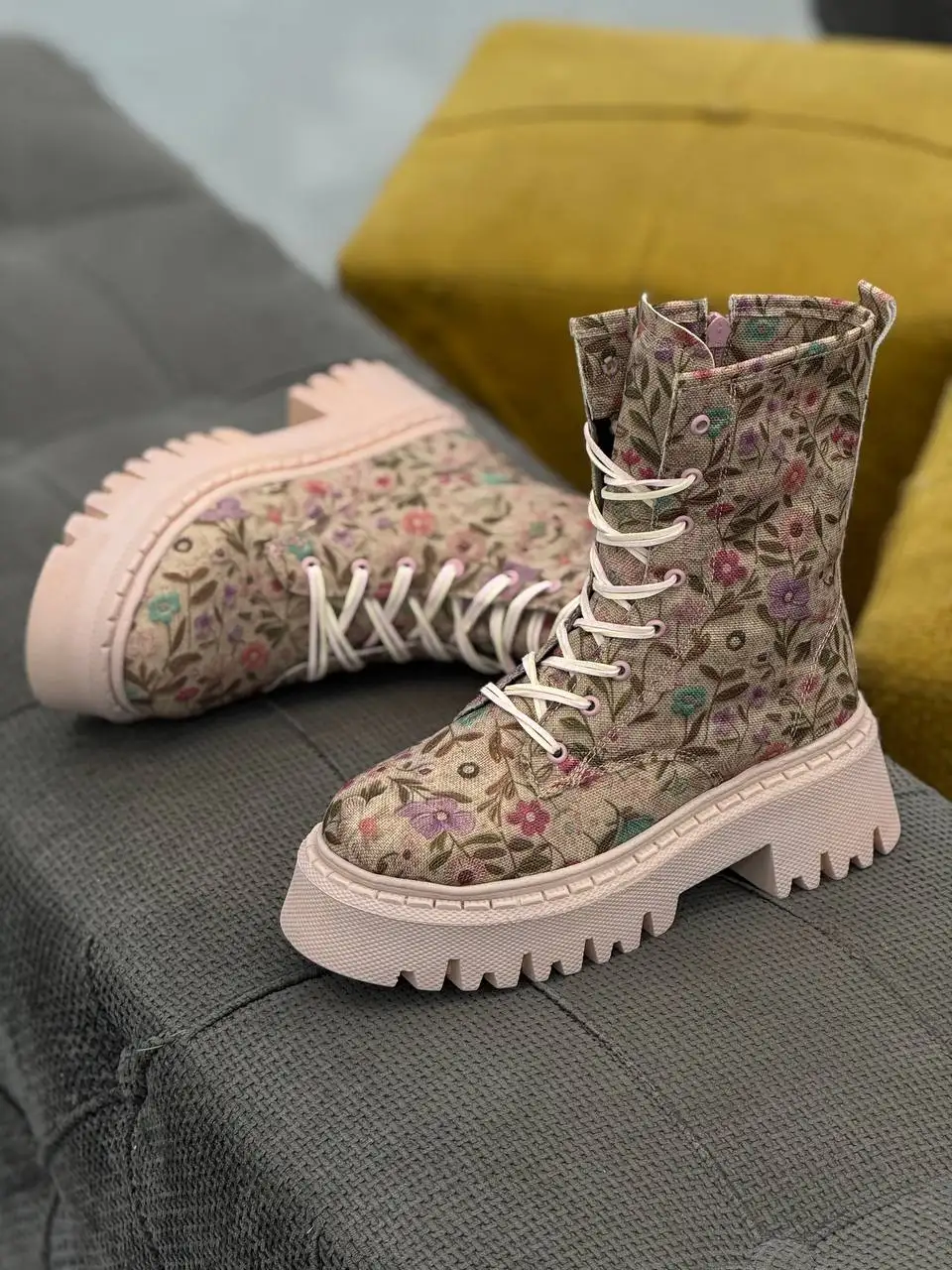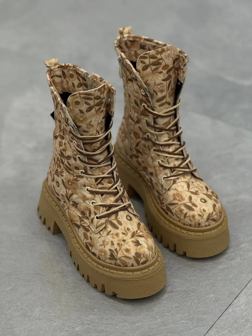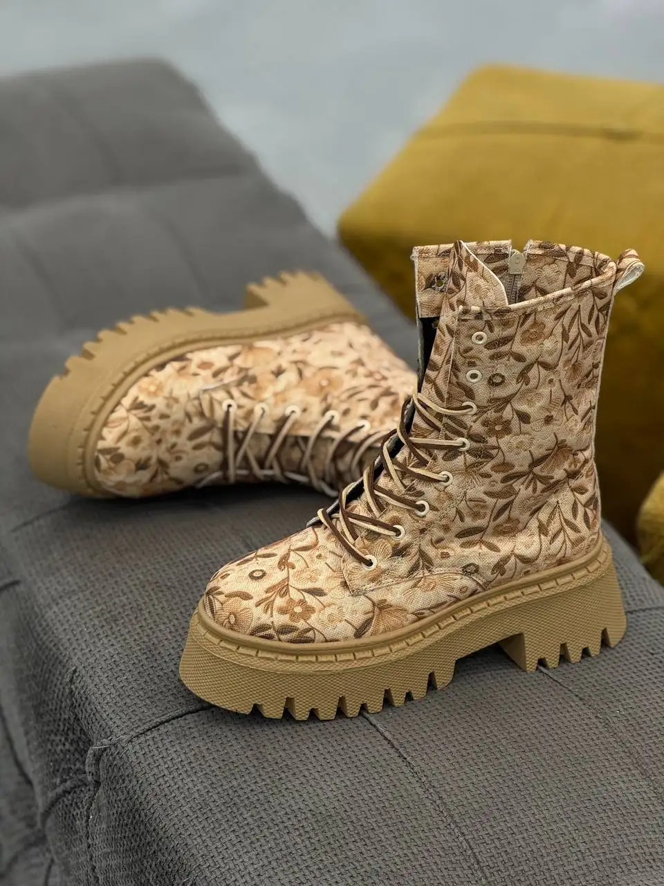 بوت مارتین طرح دار از مدلهای ترند و متفاوت فروشگاه آویشن که با طراحی بنددار، زیره عاجدار ضخیم و چاپهای خاص روی بدنه، فوراً استایل شما رو از حالت معمولی به خاص و فشن ارتقا میده. این مدل نیمساق، هم راحتی داره، هم جسارت، و برای کسانیه که دنبال آیتمی متفاوت و چشمگیر هستن، انتخابیه بیرقیب.
