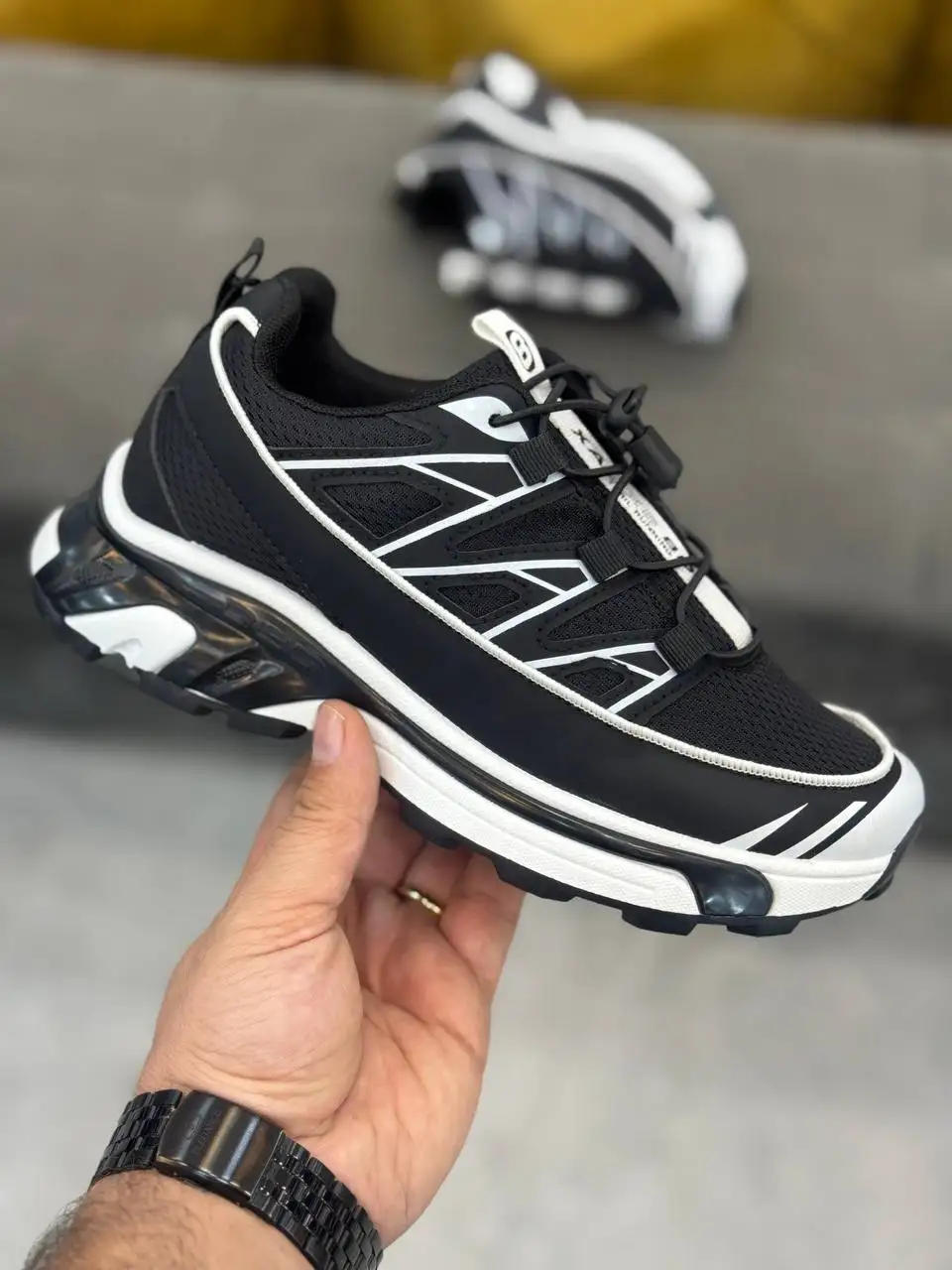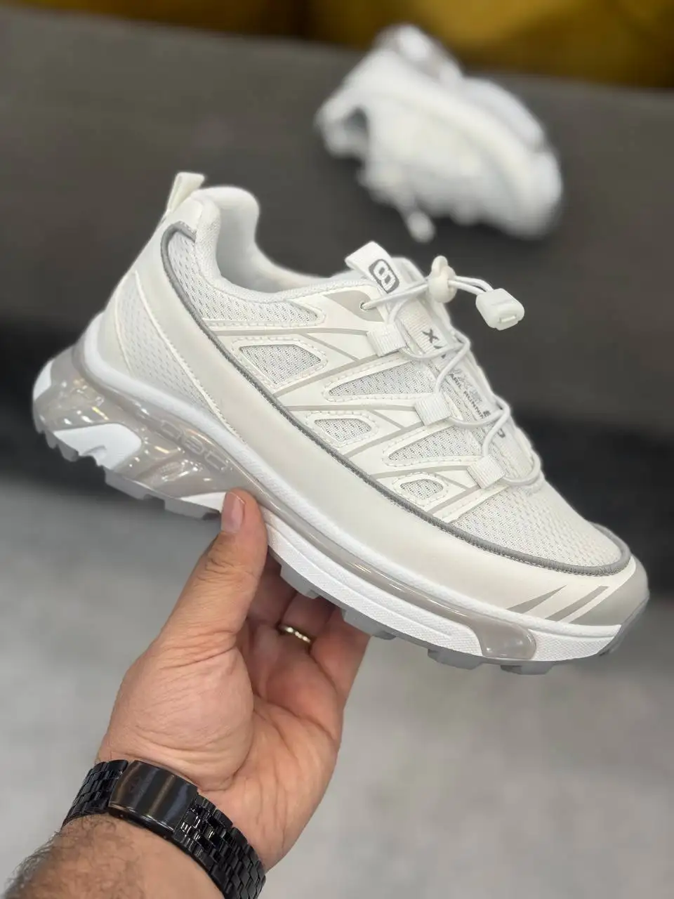 كتونی سالامون 433 با ترکیب رویه مشبک تنفسپذیر و زیره عاجدار مقاوم، هم برای شهر عالیه، هم برای مسیرهای ناهموار. سیستم بند کشی/توگِل، فیت سریع و مطمئن میده و کفی نرم فشار پا رو کم میکنه. طراحی مدرن با رنگهای خنثی، ست کردنش رو با هر استایلی راحت میکنه.